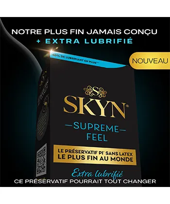 > Thèmes de la page : SKYN Supreme Feel extra lubrifié préservatif sans latex polyisoprène SKYNFEEL ultra-fin texture lisse réservoir 53 mm taille standard